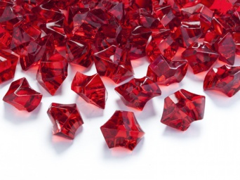 Pojmy spojené s tímto produktem: krystaly, ice, konfety, tmavě červená, červená, na stůl, romantika, svatba, večírek, dekorace