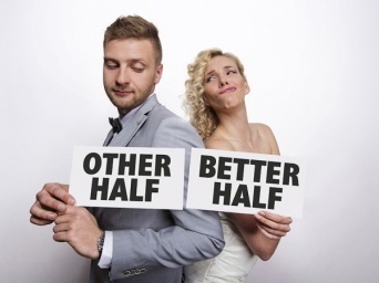 Foto kartičky s nápisy: other half a better half. Vtipný doplněk do fotoukoutku na svatby k vytvoření veselých fotografií.