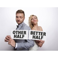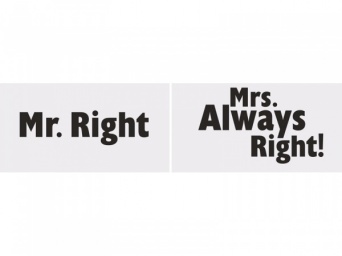 Tyto kartičky do fotokoutku se skvěle hodí na svatbu pro novomanželé. Na jedné je nápis Mr. Right a na druhé Mrs. Alway Right!