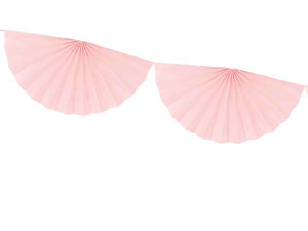 Pudrová girlanda z rozet ve světlounce růžovém provedení. Průměr každé rozety cca 40 cm. Perfektní volba na narozeninové oslavy, párty či večírky.