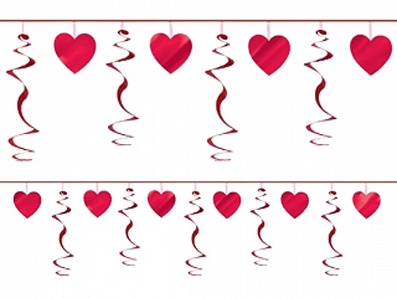 Červená girlanda v podobě srdíček a spirál. Ideální doplněk na Valentýna, svatební večírek nebo narozeninovou oslavu. Rozměr: 365 cm.