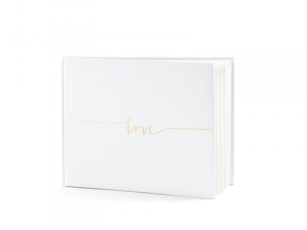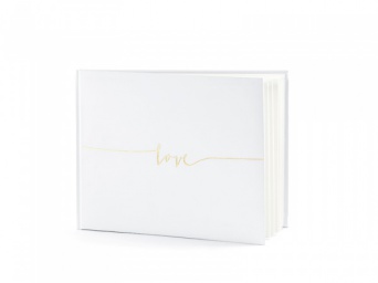 Kniha hostů slouží k zaznamenání vzpomínek z Vaší svatební oslavy. Kniha je v bílém provedení se zlatým nápisem Love. Kniha obsahuje 22 stran.