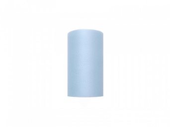 Tylová stuha ve světle modré barvě o rozměrech: 0,08 x 20 m. Tato ozdoba se skvěle hodí na svatbu.