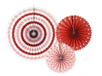Papírové rozety v růžovo-červeném provedení. Tento doplněk je skvělou dekorací na Valentýna nebo svatbu. Balení obsahuje 3 kusy.