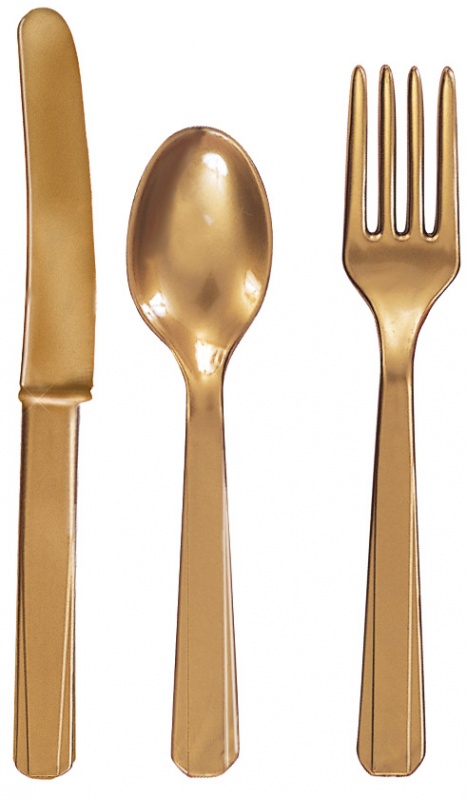 Plastový příbor ve zlaté barvě pro 8 lidí. Ideální doplněk na zahradní večírek nebo jiné oslavy.