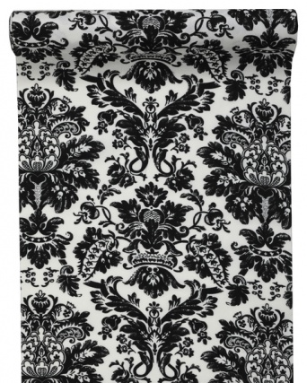 Bílý stolní běhoun s černým vzorem krásně doladí slavnostní tabuli. Tento ubrus vypadá velmi stylově. Rozměry: 28 cm x 5 m.